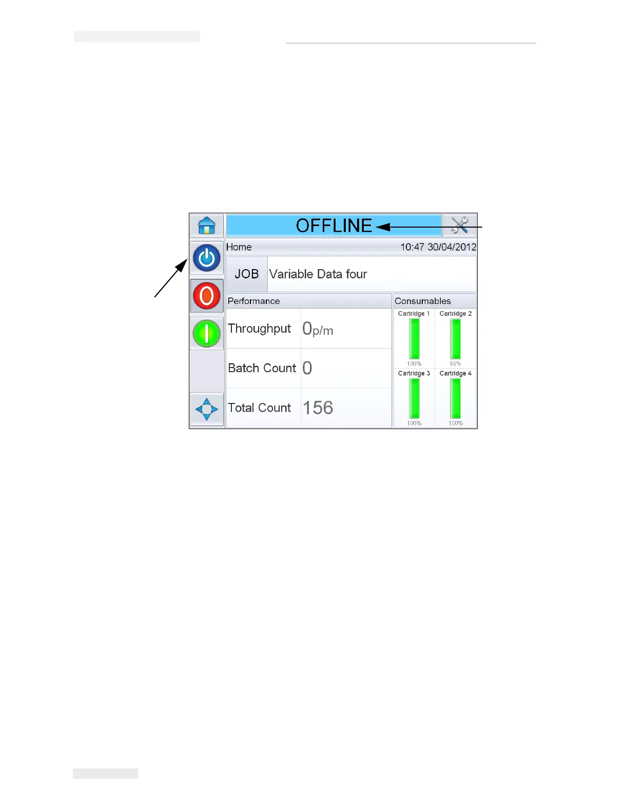 Home Page (Figure 5-17) followed by OFFLINE status when the printer