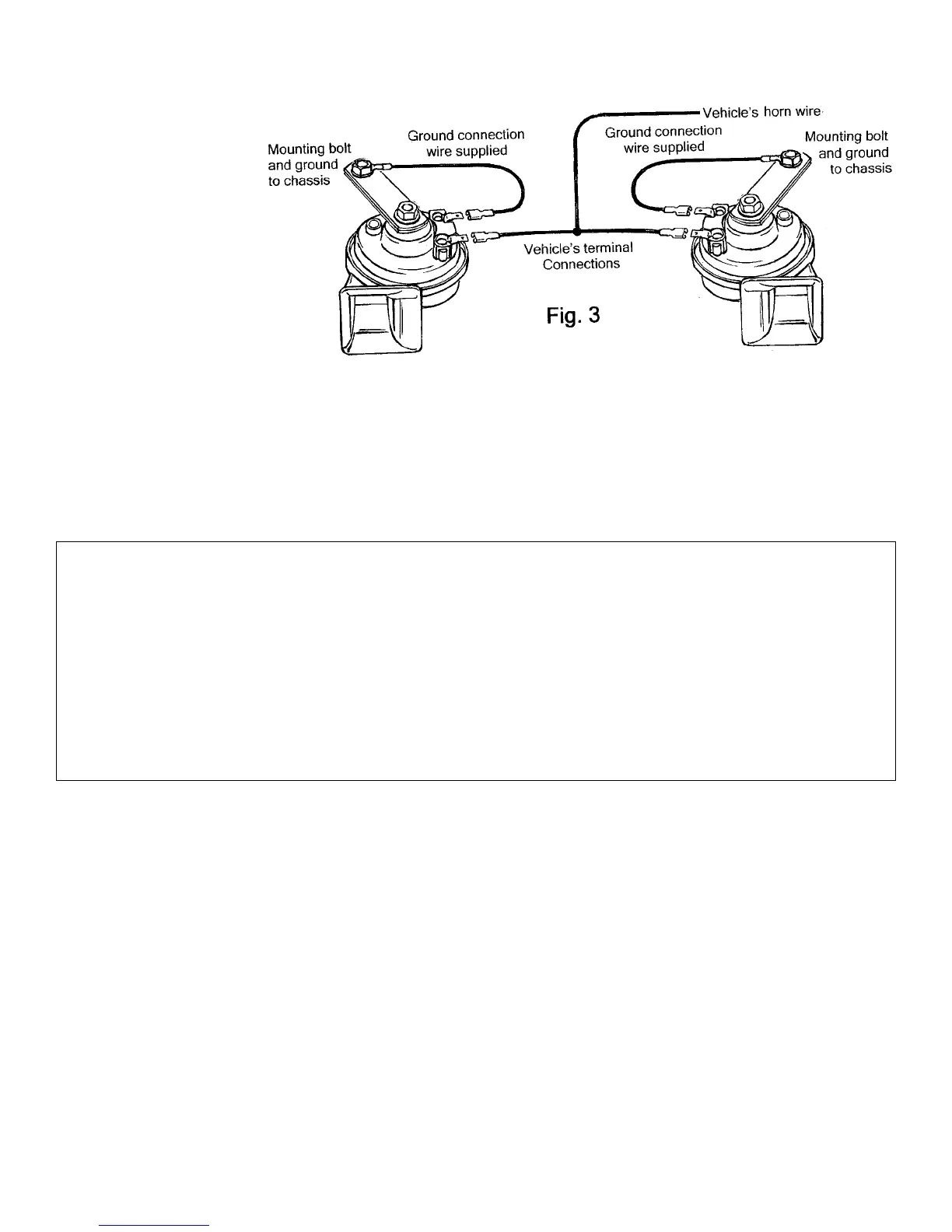 bolts of the horn and firmly tighten. Make sure the horn’s mounting bracket is secured to a metal body