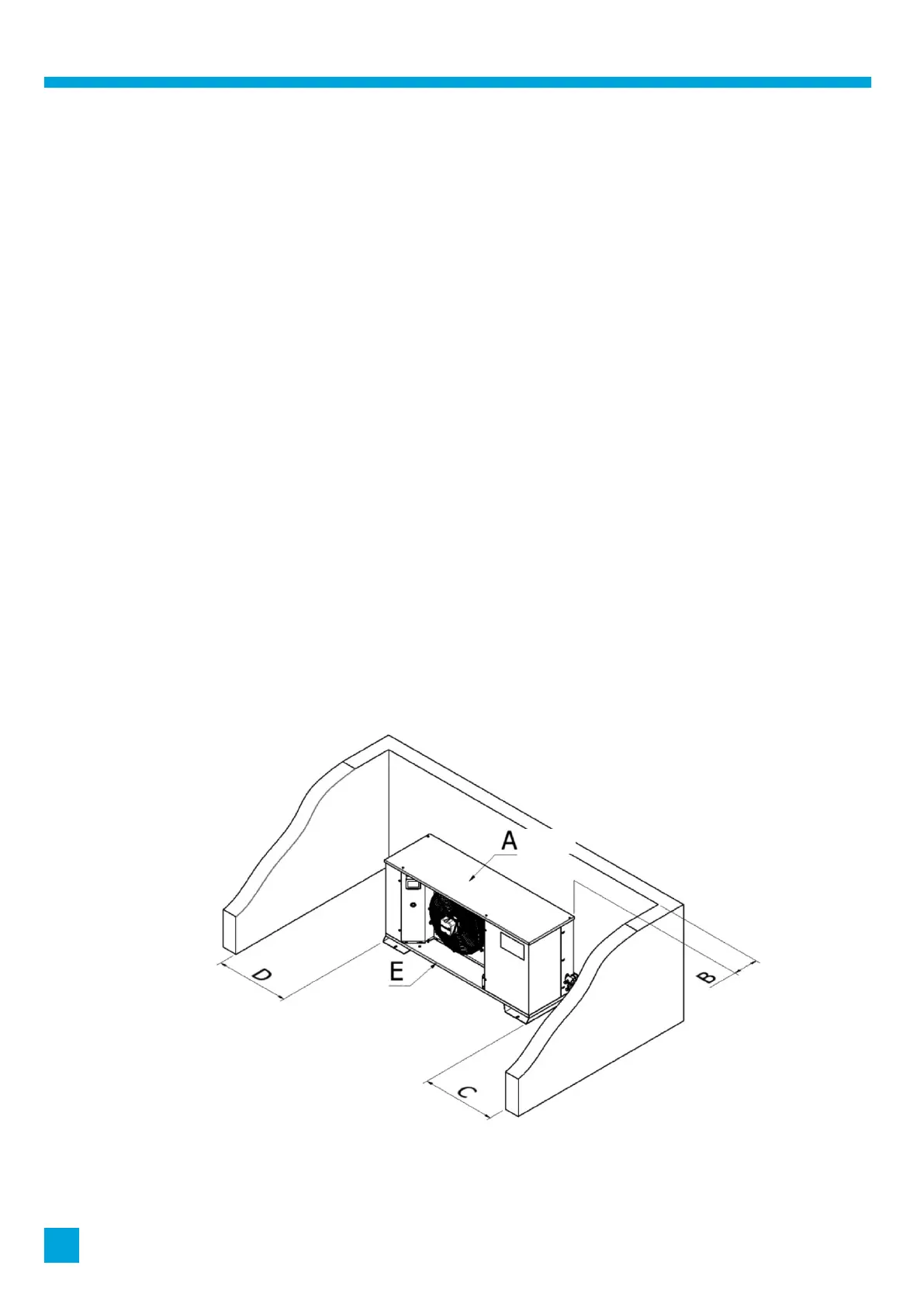 • The location of the unit should take into account the minimum clearances, as detailed below.