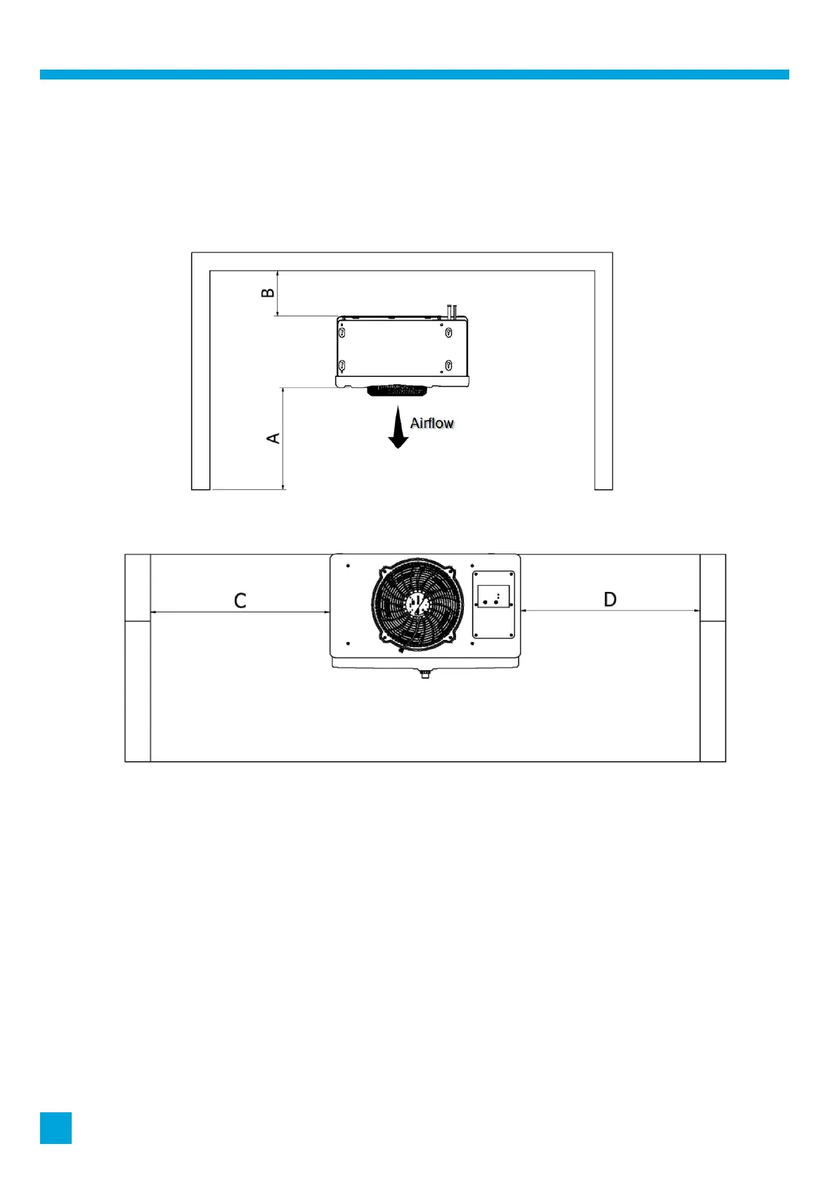 Locate the evaporator in accordance with the minimum clearances as detailed below: