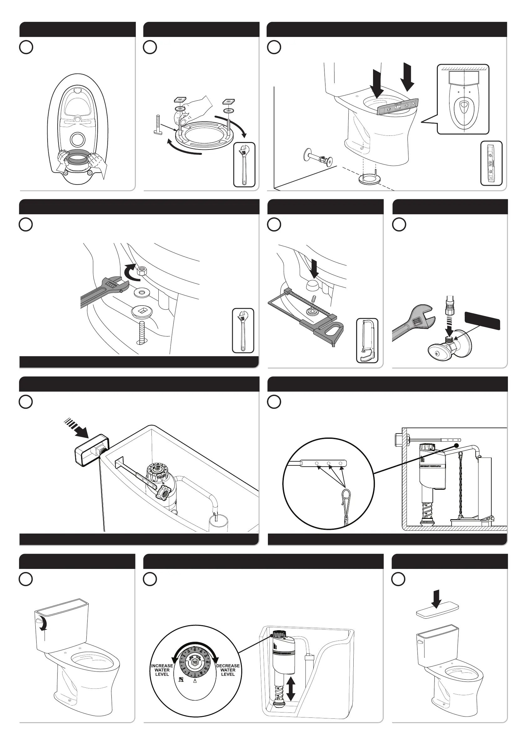 Turn the Toilet upright and gently lower into position over the Closet Flange and Closet Bolts. With