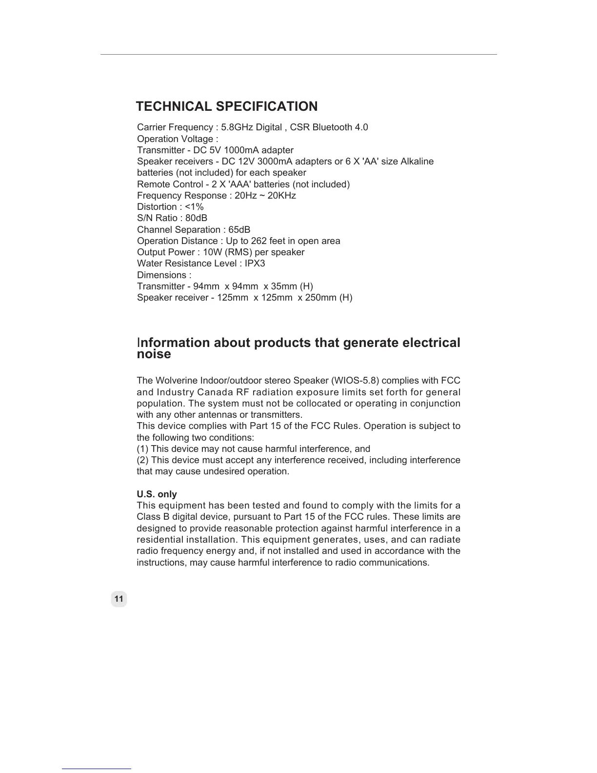 The Wolverine Indoor/outdoor stereo Speaker (WIOS-5.8) complies with FCC
