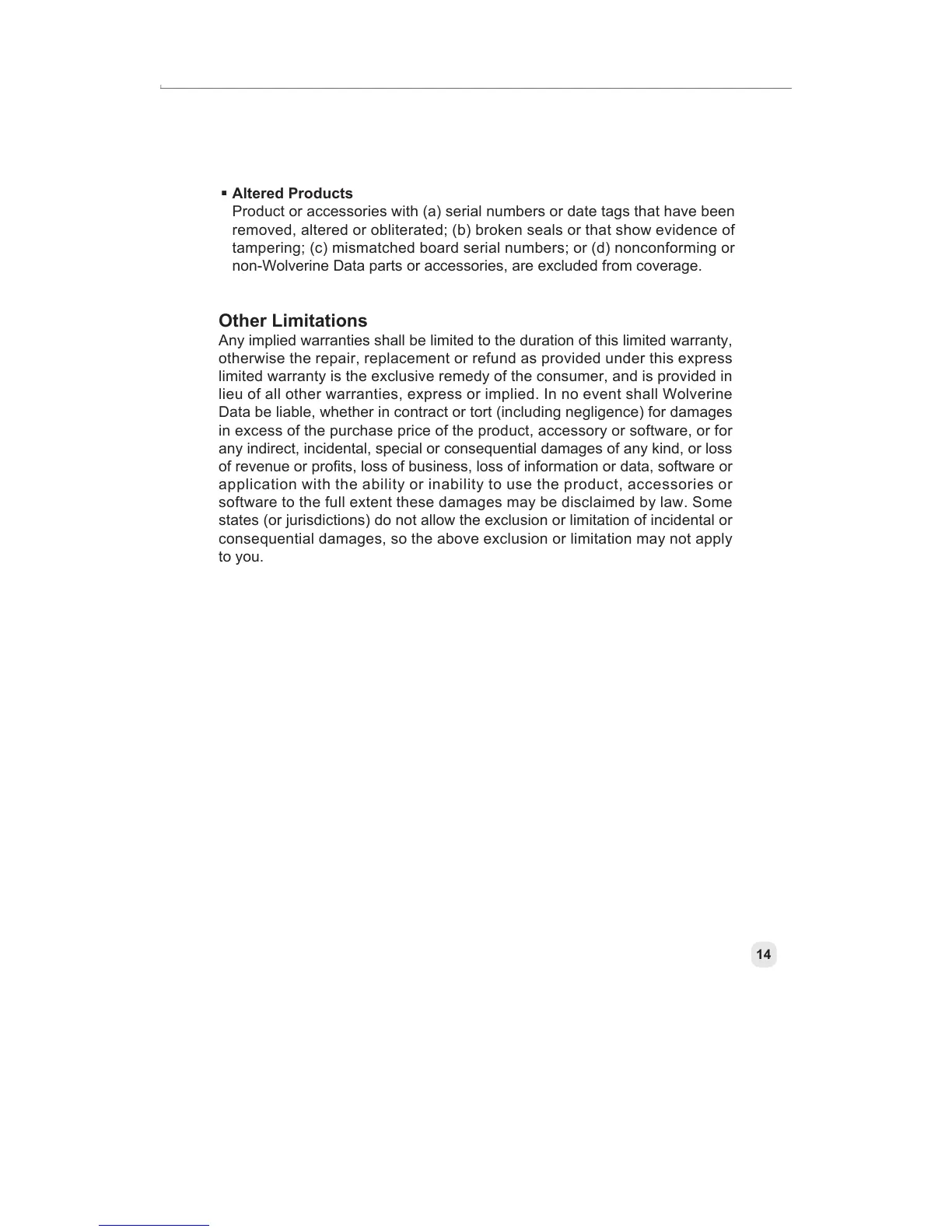 non-Wolverine Data parts or accessories, are excluded from coverage.