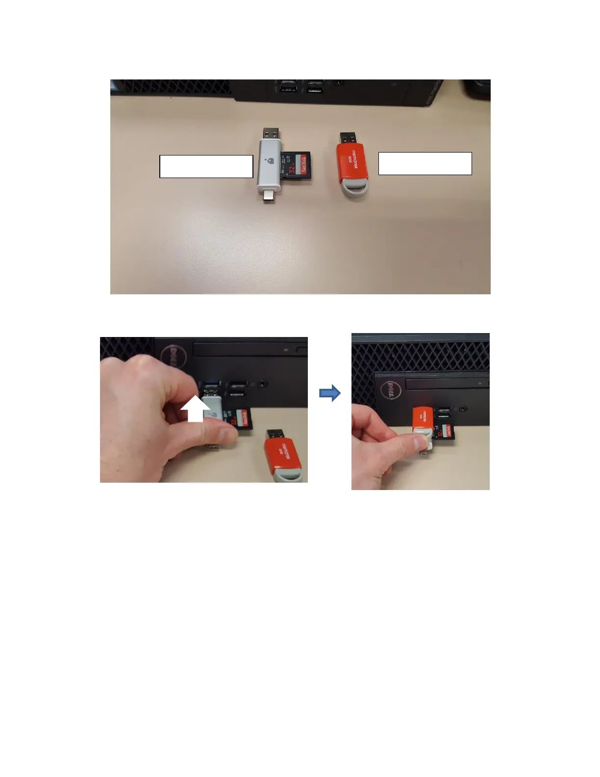 27. You’ll now take the silver USB adapter with SD card and your flash drive over to one of