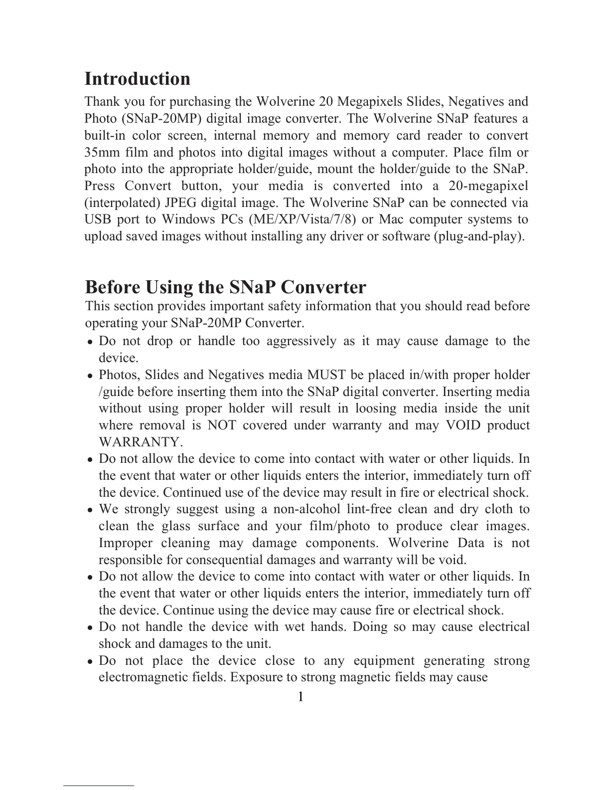 Thank you for purchasing the Wolverine 20 Megapixels Slides, Negatives and