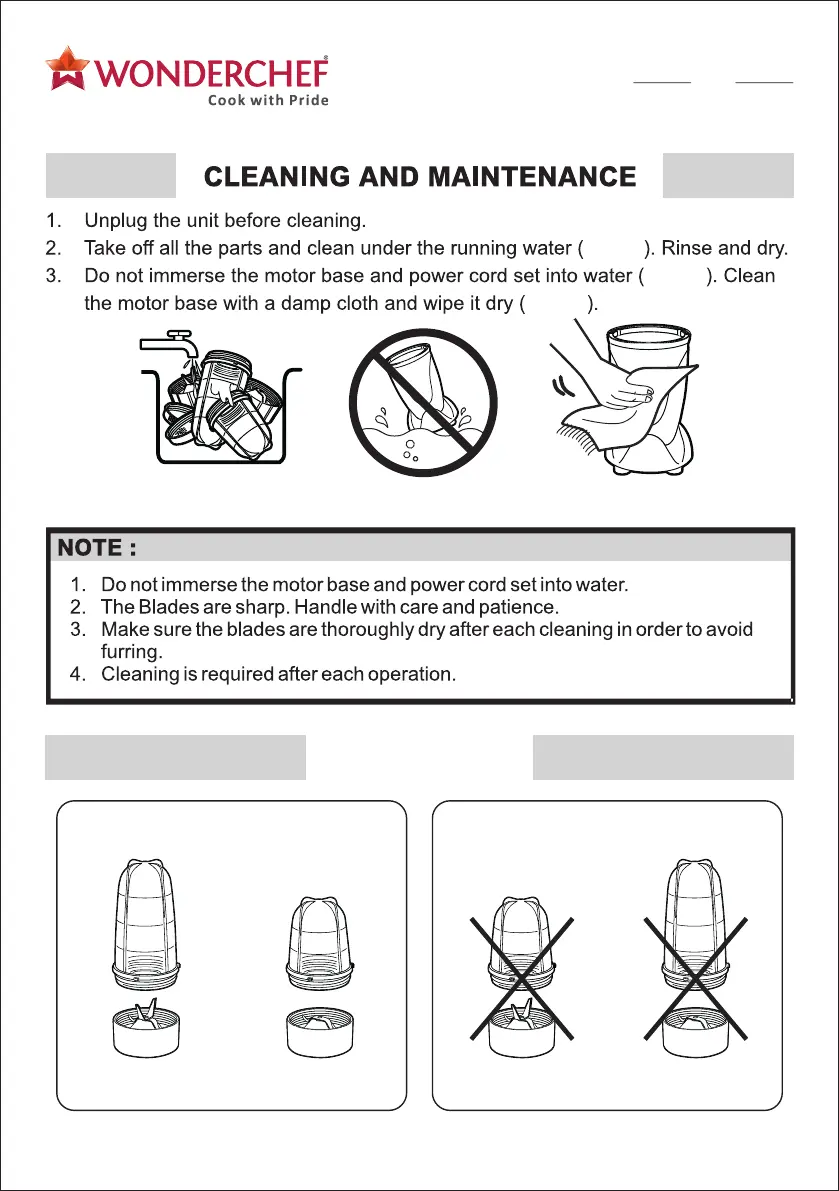 WonderChef Nutri-blend - Cleaning and Maintenance; General Warnings