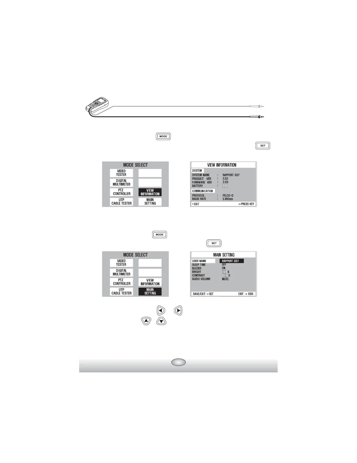 Mode Setup : First, press key more than 3 sec. and select VIEW