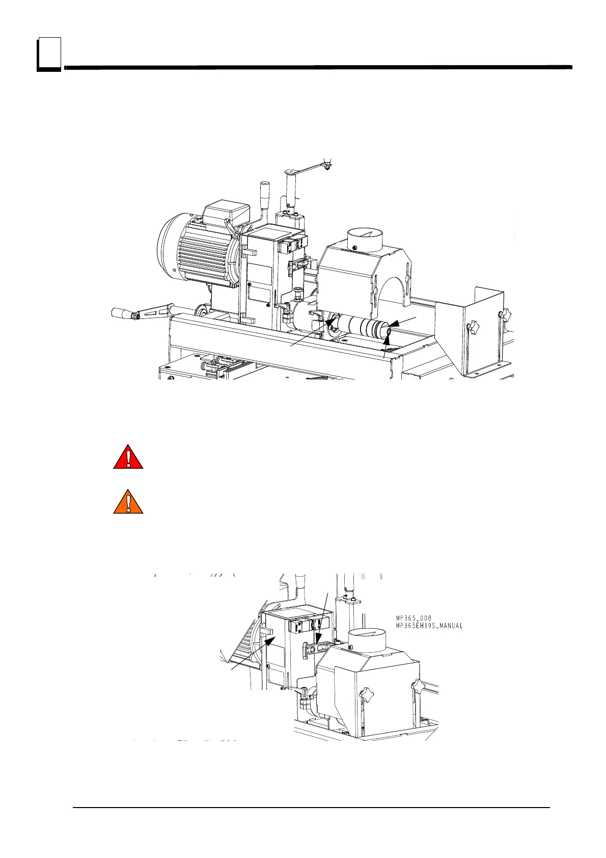 WARNING! In case of a drive belt break, wait until all rotating parts are