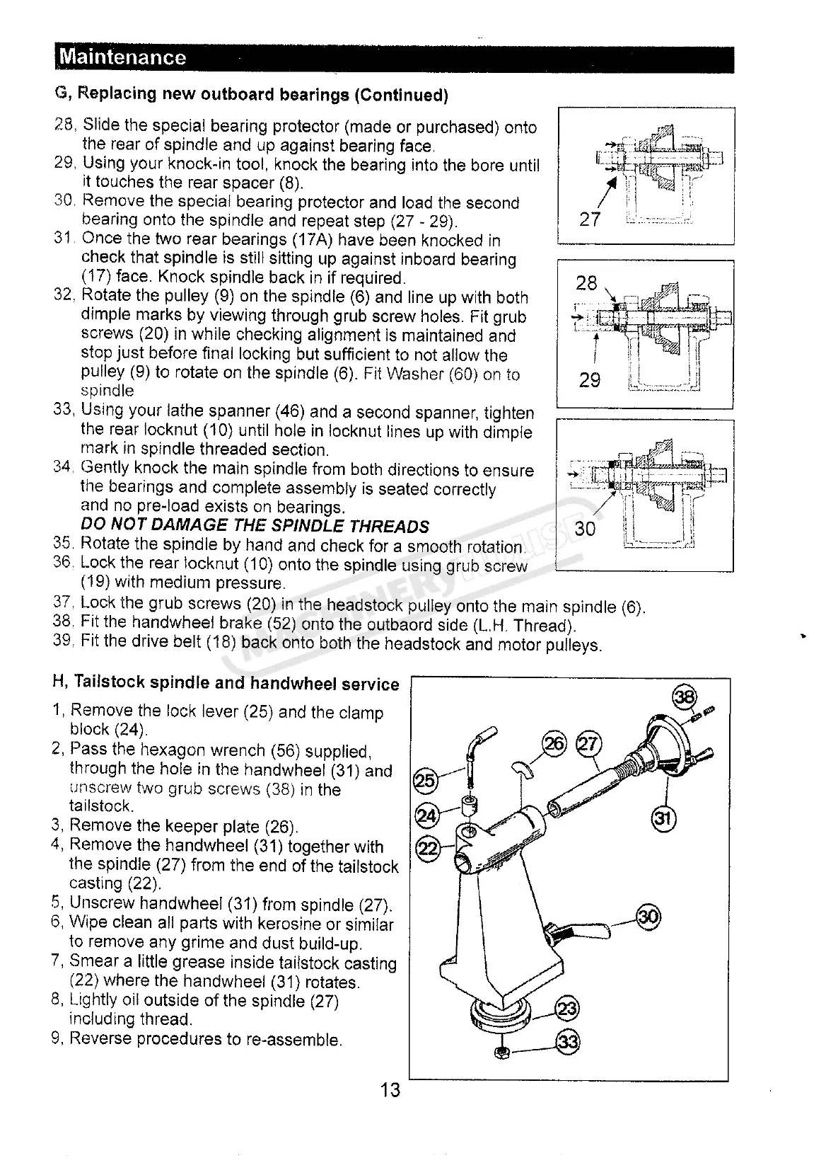 WoodFast M910 - Tailstock spindle and handwheel service