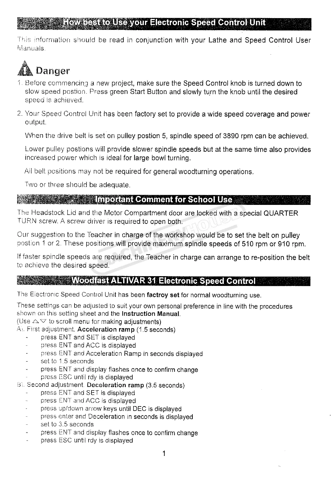 WoodFast M910 - Electronic Speed Control Unit; General Usage and Danger Warnings; Adjusting Speed Control Settings