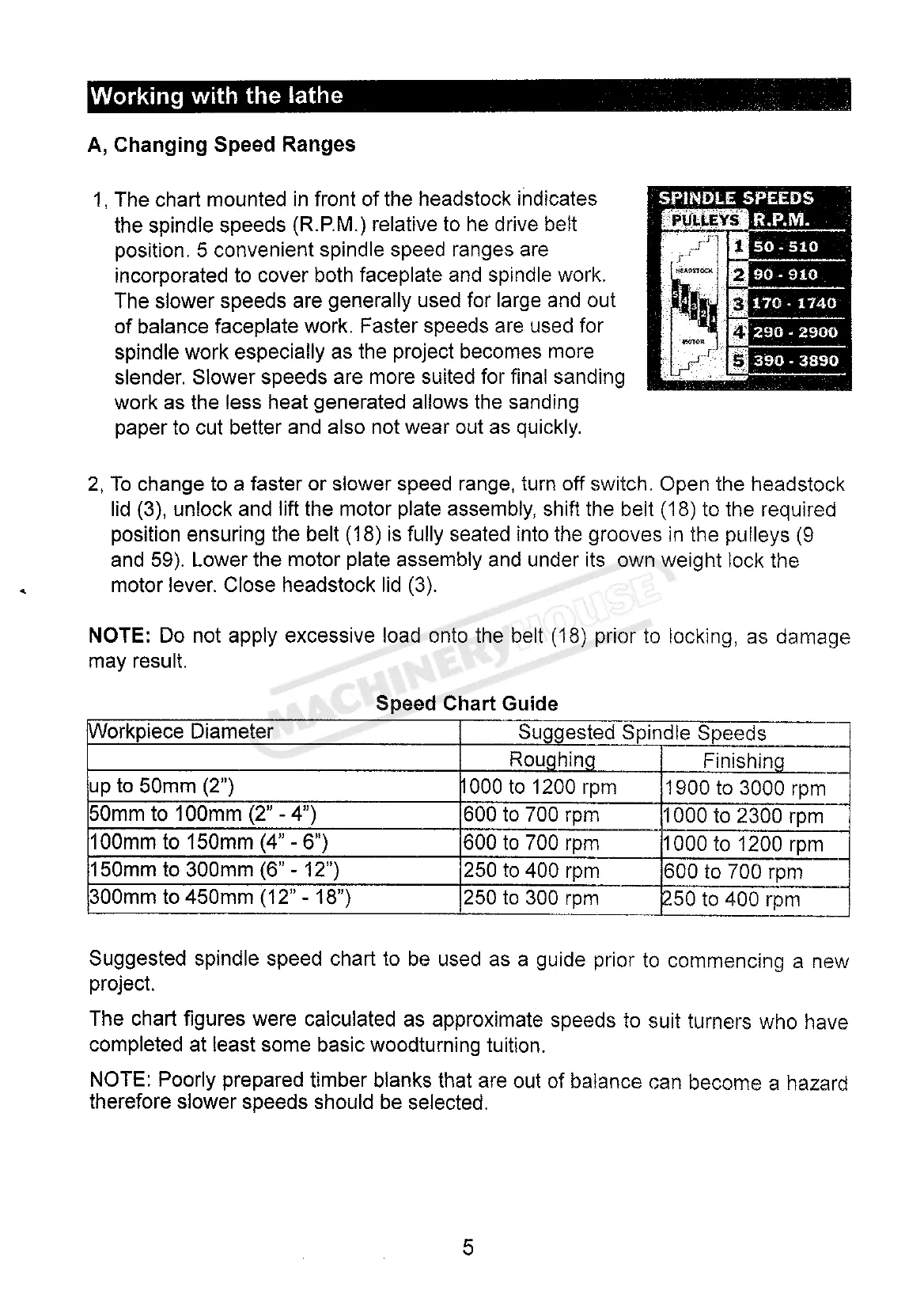 WoodFast M910 - Working with the lathe; Changing Speed Ranges