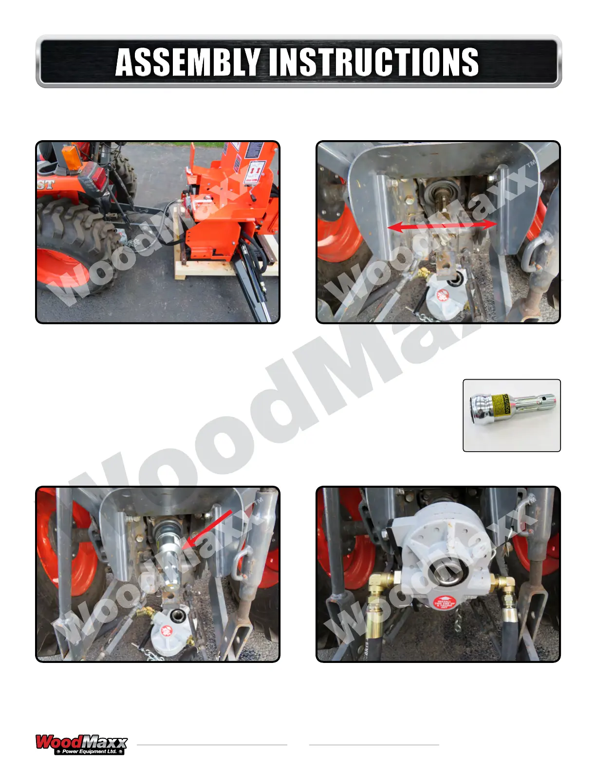 PTO shaft extender installed (red arrow) This