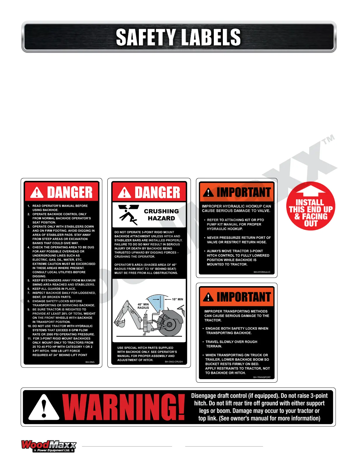 Your Backhoe Attachment comes equipped with all safety labels in place. They were
