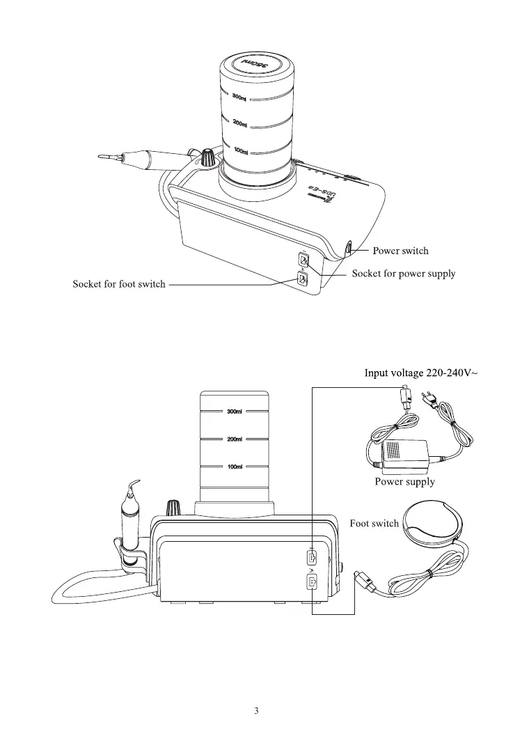 1.4.2 Sketch map for connection of foot switch, power supply and main unit.