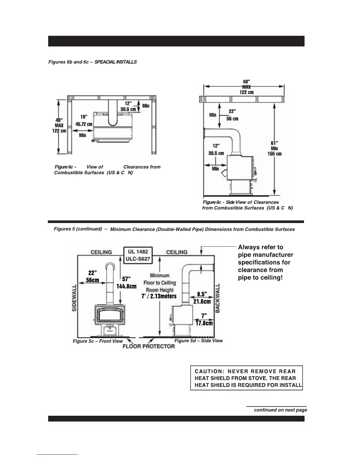 WoodPro WS-TS-2000 - MINIMUM CLEARANCES ALCOVE and DOUBLE-WALLED PIPE