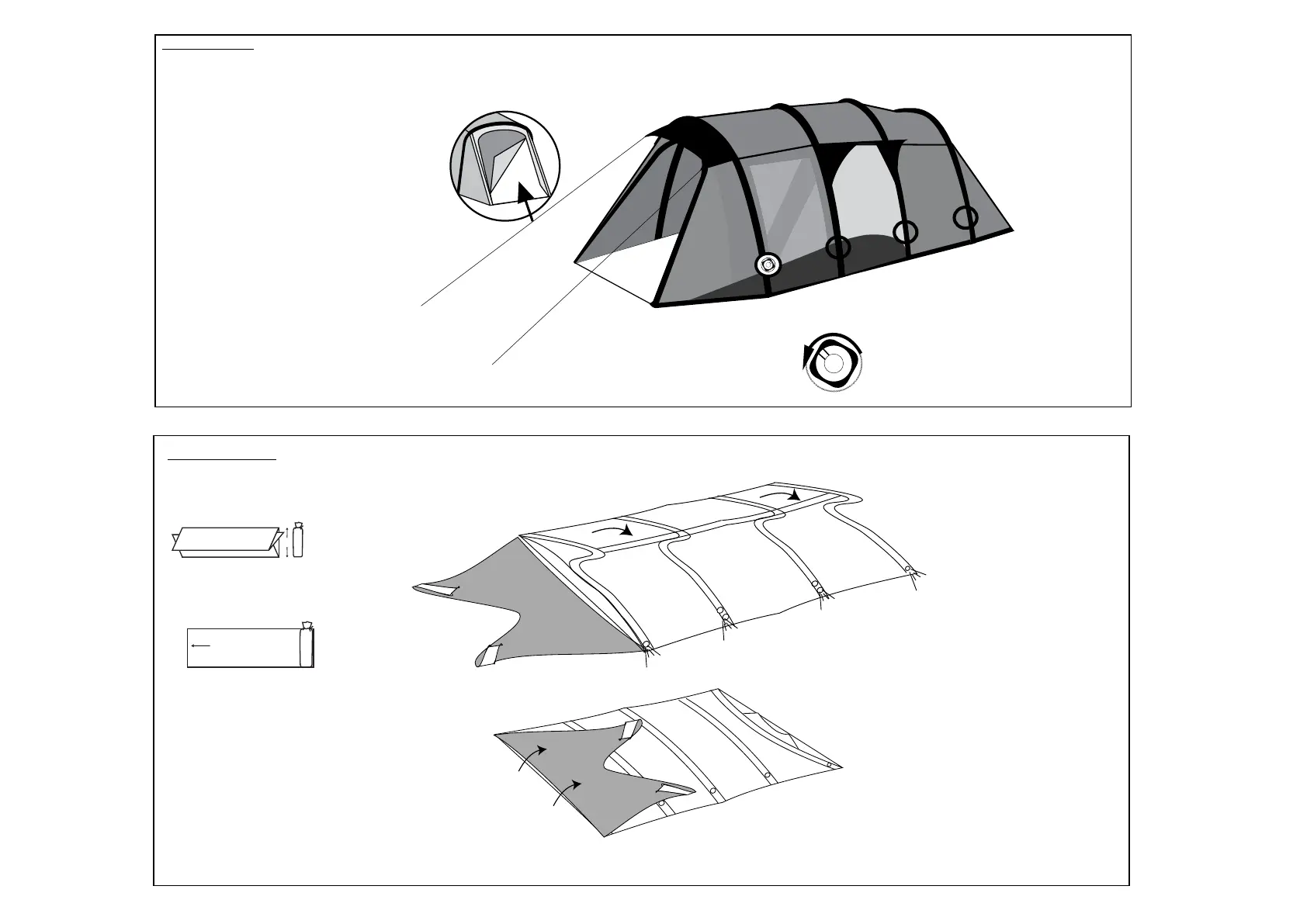 1) Fold the tent towards the valve ends to expel the air.