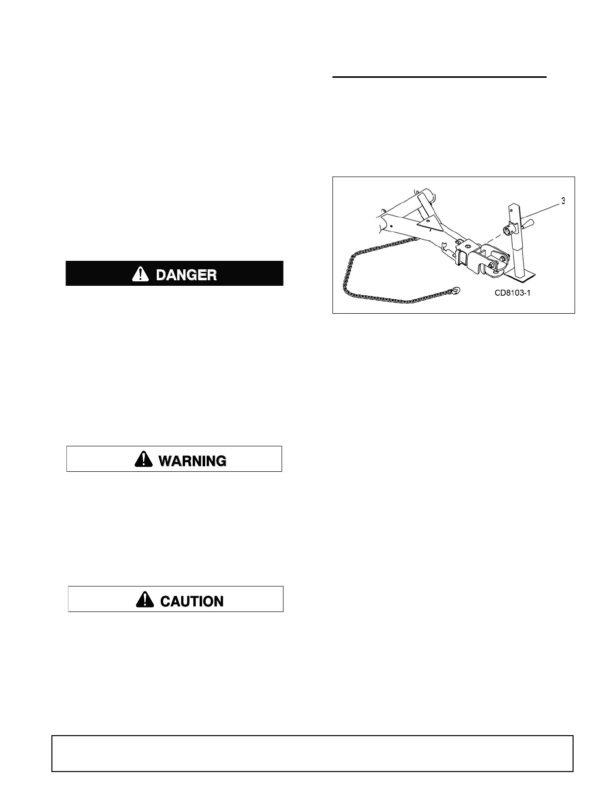 2. Attach safety tow chain to drawbar support. Leave