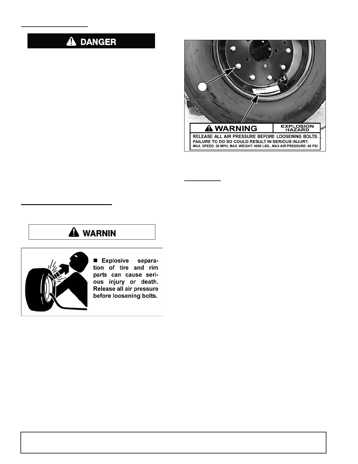 — not in front of or over the tire assembly. Use a safety