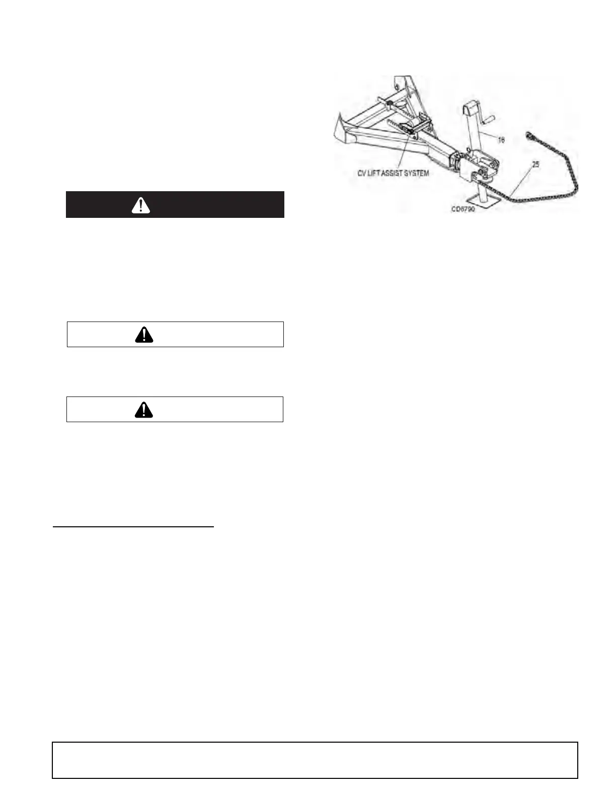 the driveline. When using a tractor of this type, the CV lift assist system