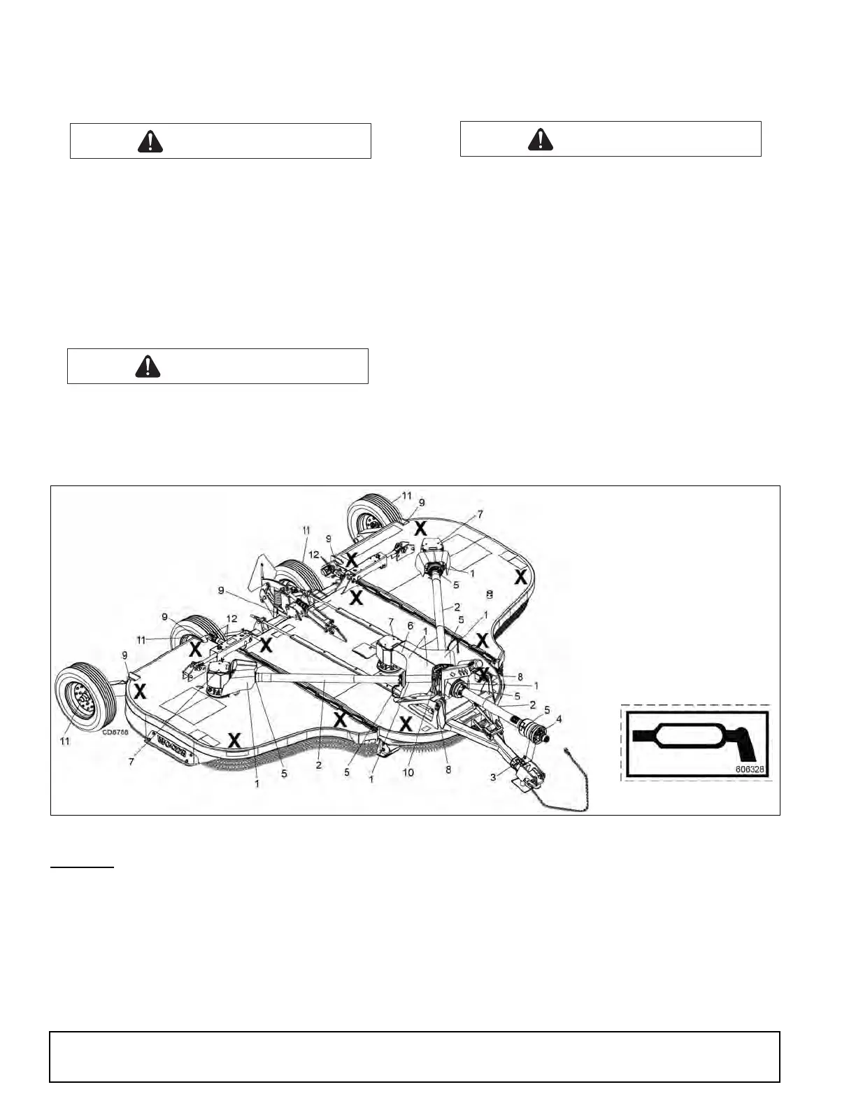 bukker (vist med X-er i Figur 5) under slåmaskinen før du jobber