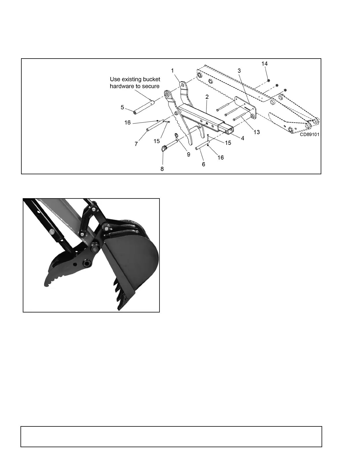 Hydraulic thumb installed only at factory. See page 51