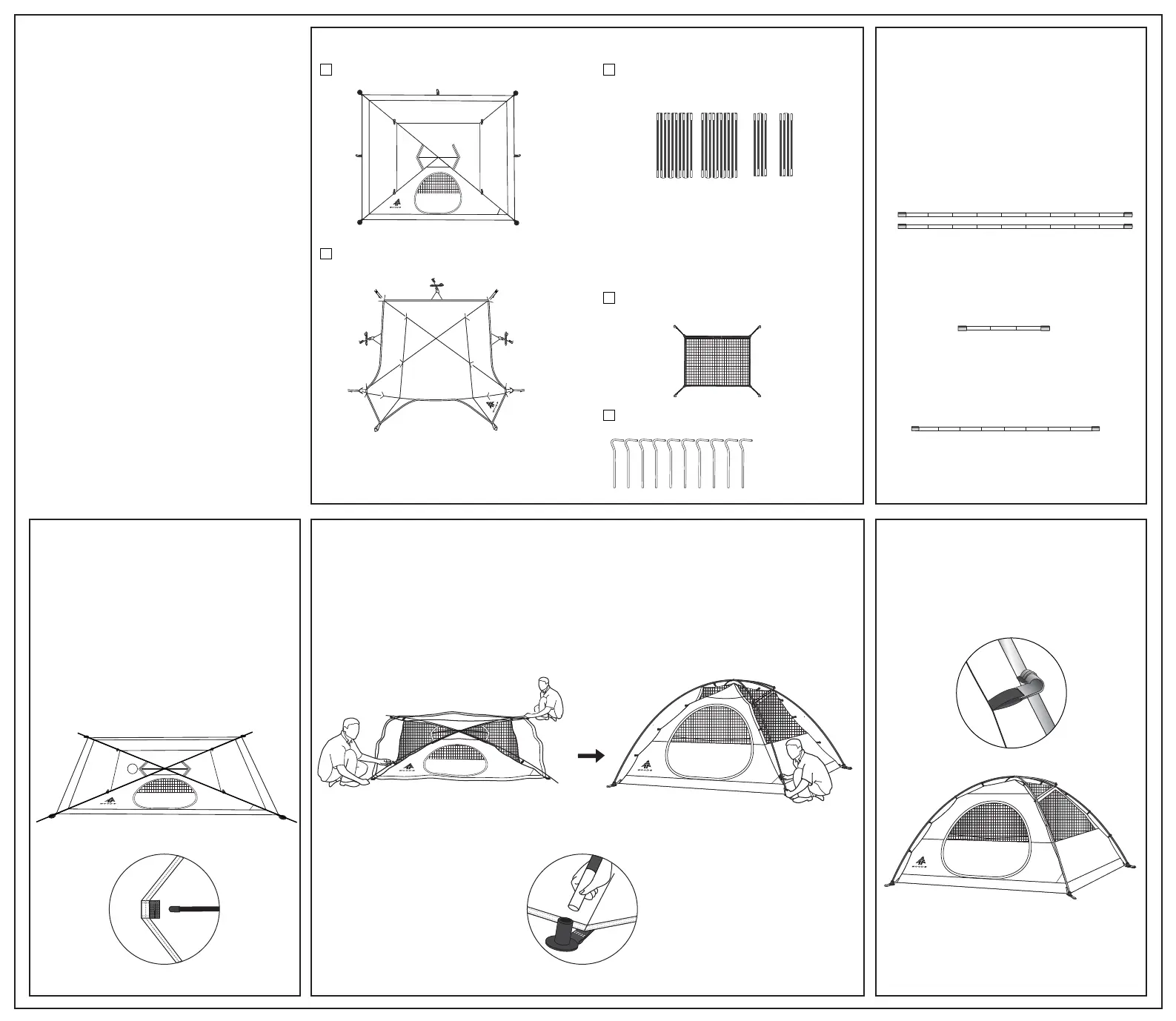 Step 3 : Spread out tent, insert poles Step 4 : Secure main poles