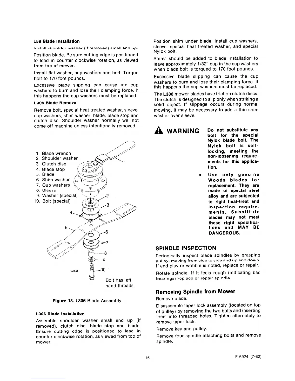 Woods L59 - Blade Installation and Spindle Removal