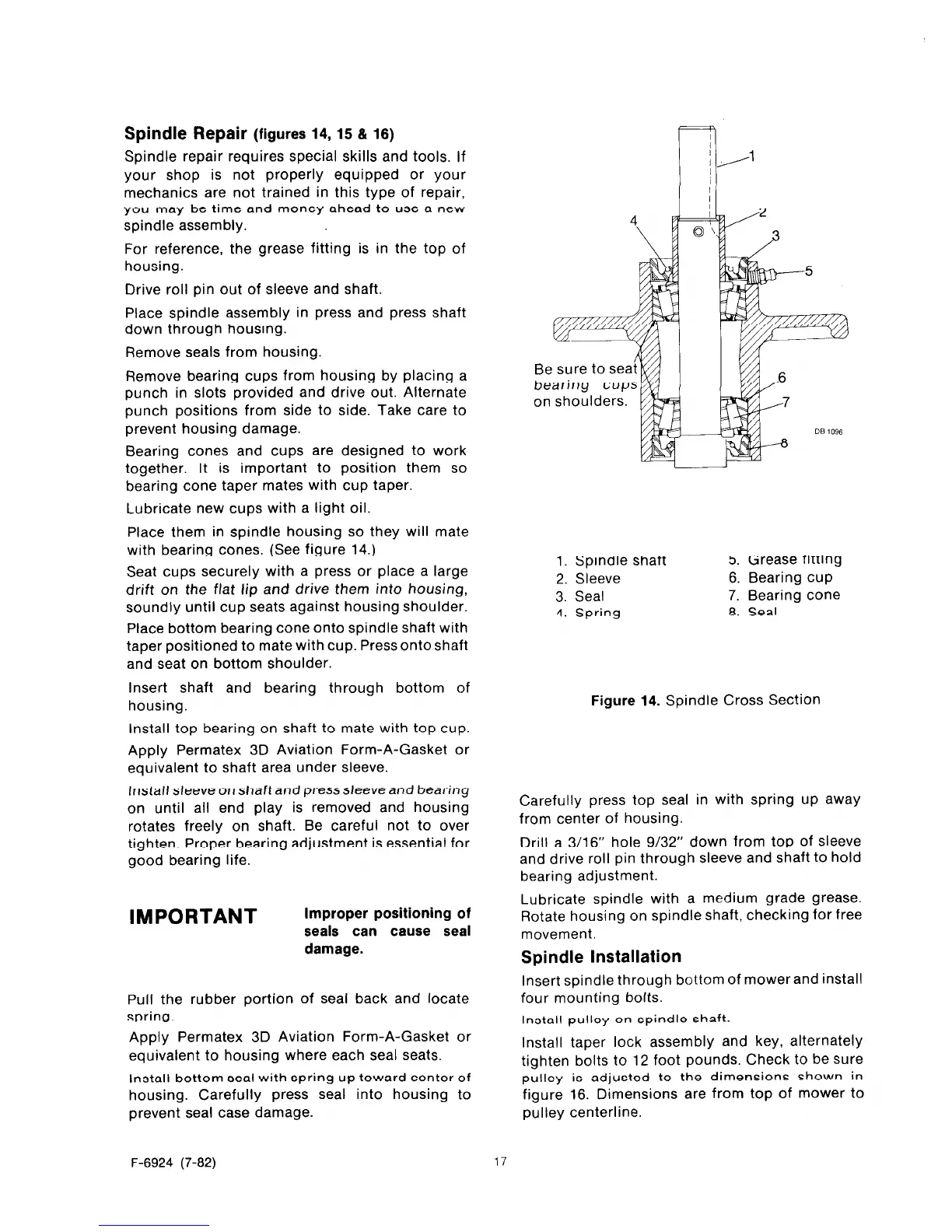 Woods L59 - Spindle Repair;Installation; Spindle Cross Section View