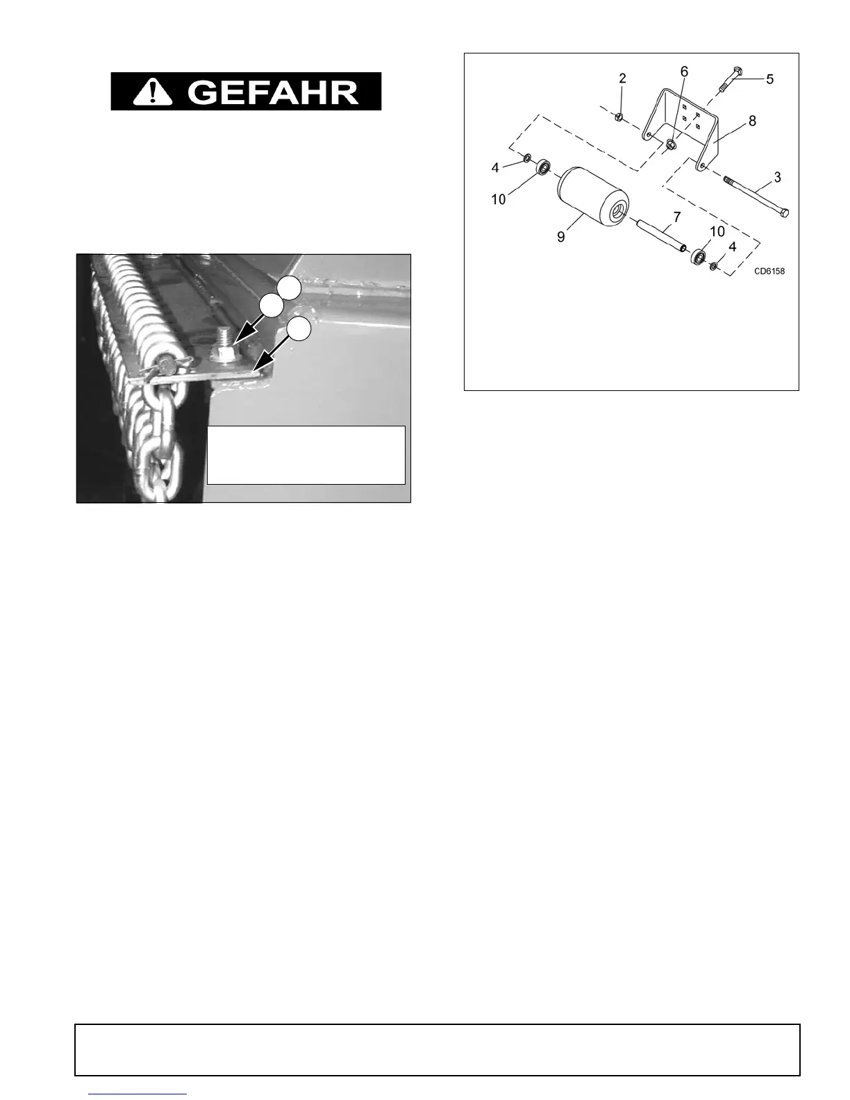 Befestigen Sie beide Kettenenden (2) wie gezeigt hinten am Mähergestell.