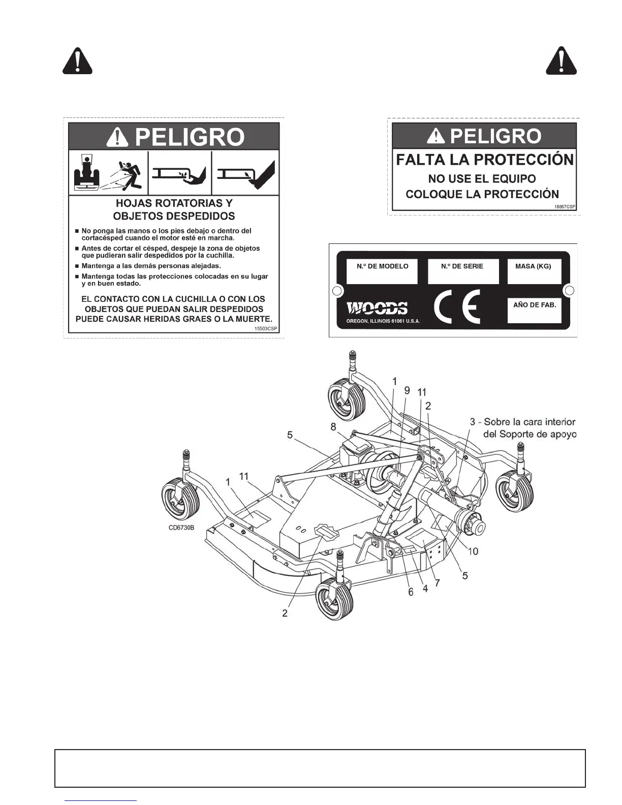 Puede solicitar a su distribuidor de Woods pegatinas de seguridad nuevas de forma gratuita. Para localizar a su distribuidor