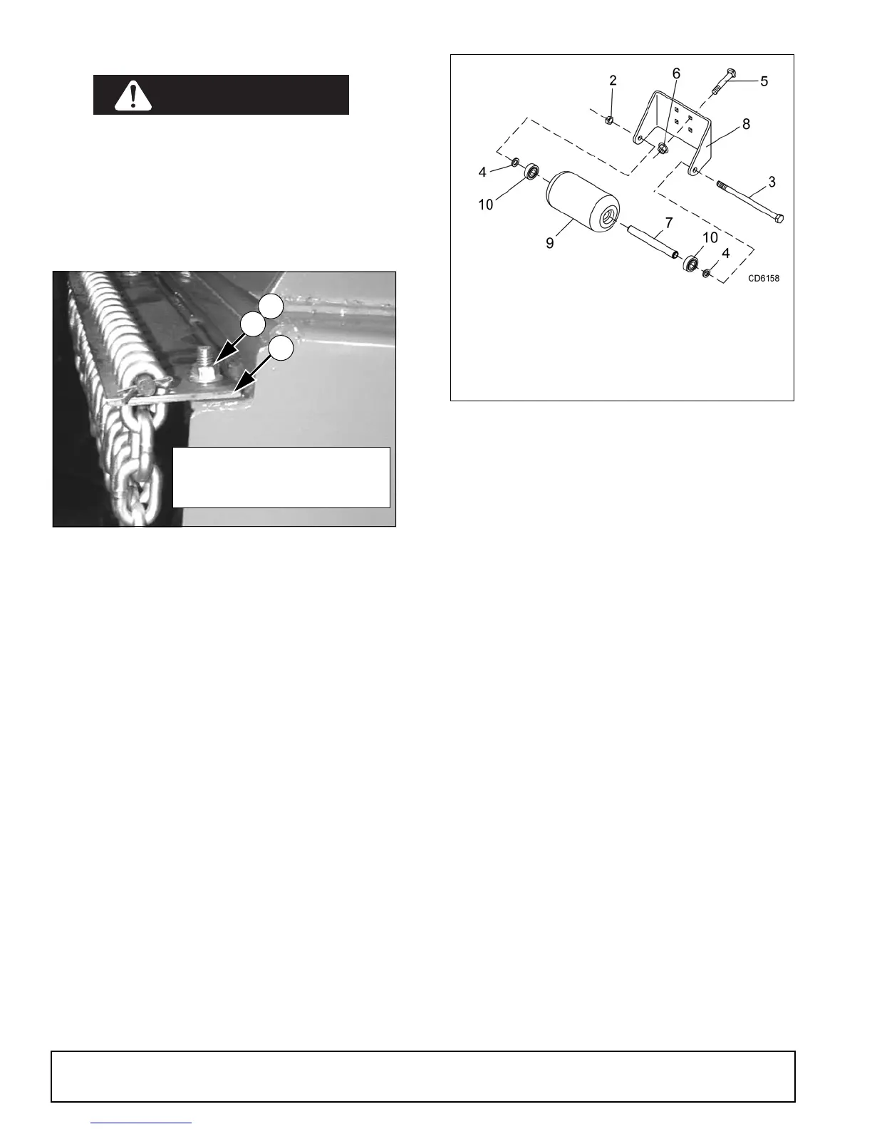 Coloque el soporte del rodillo (8) sobre los pernos; después instale las tuercas de