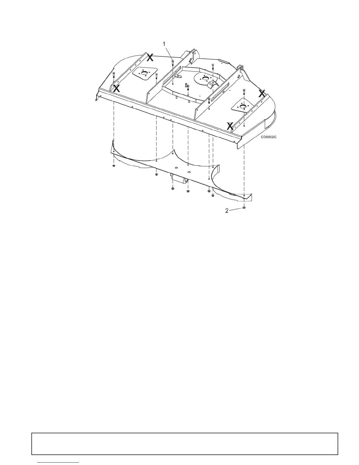 1. Using the tractor 3-point, or suitable lifting device, carefully lower deck onto 101.6 - 152.4 mm