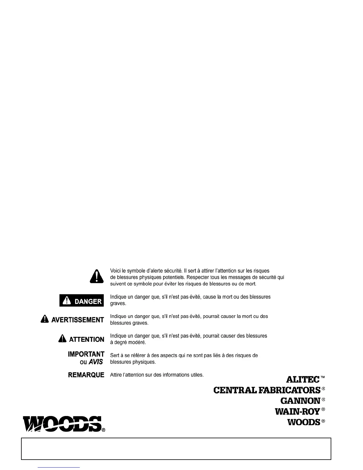 Lisez ce manuel avant de faire fonctionner votre équipement Woods. L'information présentée vous préparera à réaliser un