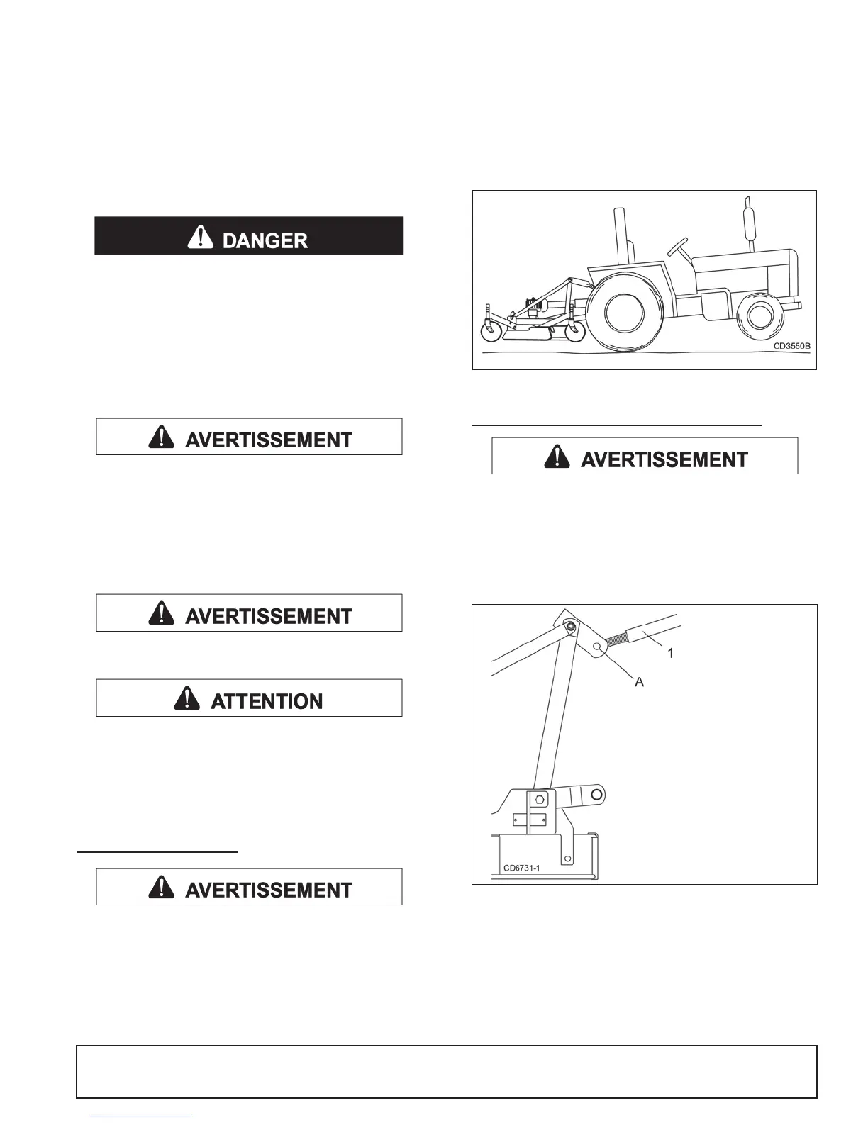roues avant du tracteur. Sinon, le tracteur risque de basculer et de causer