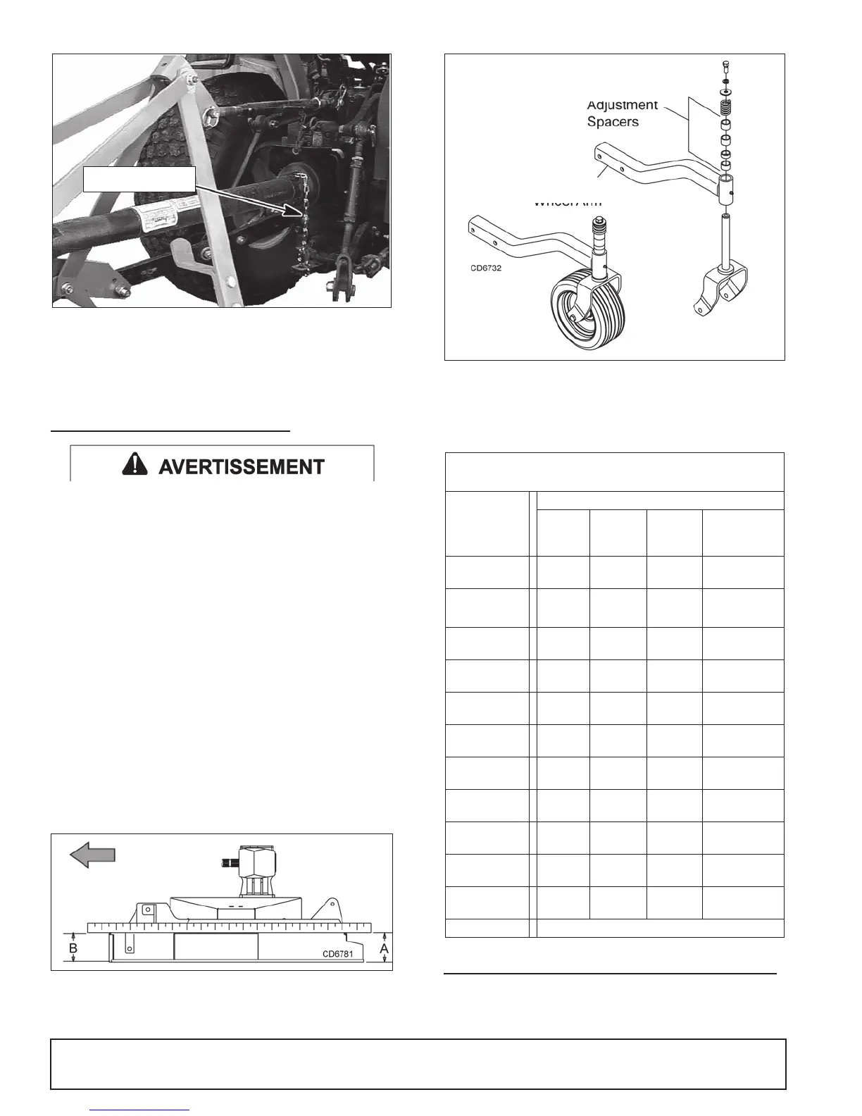 aligné à la verticale avec l'axe d'attelage (B) de la faucheuse, Figure 6.