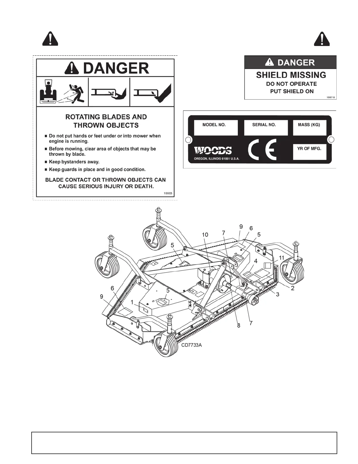 Replacement safety decals can be ordered free from your Woods dealer. To locate your nearest