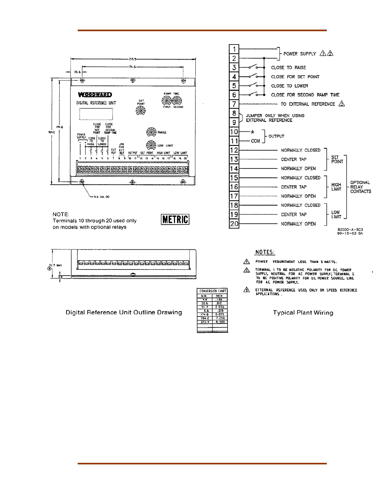 Woodward Digital Reference Units - Figure 3-1. Plant Wiring Diagram and Outline Drawing