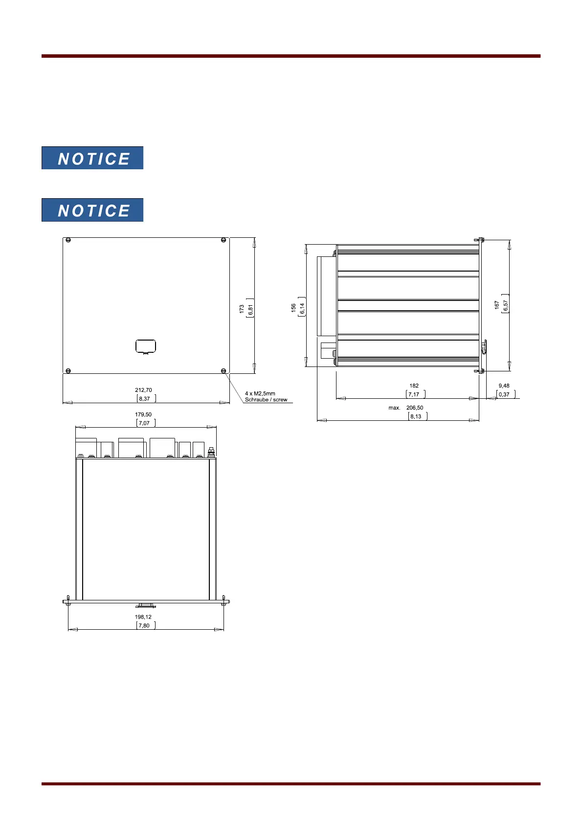 3-Side-View B2 Housing (19” Devices). (All dimensions in mm, except dimensions in brackets [inch].)