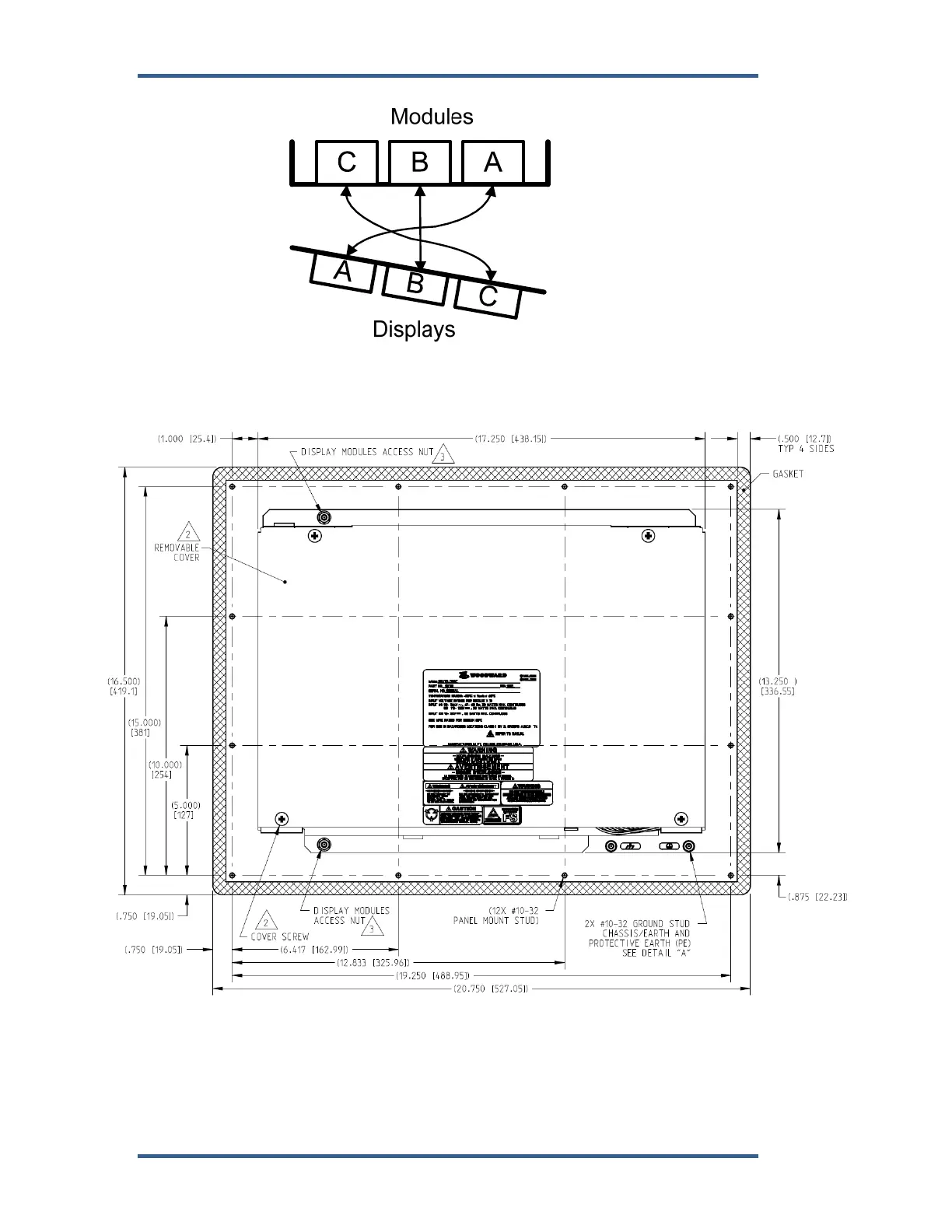 Woodward ProTech TPS - Figure 2-4 D. Panel Mount Schematic Showing Front Panel a Connection to Module a and Front Panel C Connection to Module C-Top View; Figure 2-5 A. Mounting Outline Diagram for Panel-Mount Models