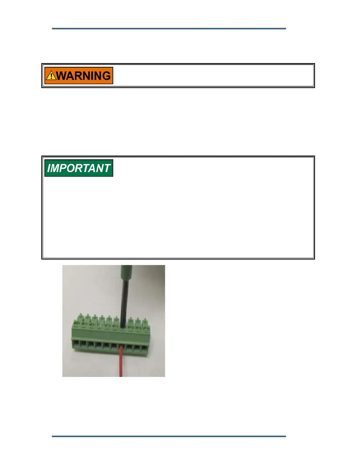 blocks should be stripped at 8 mm (0.3 inch). Torque and screwdriver