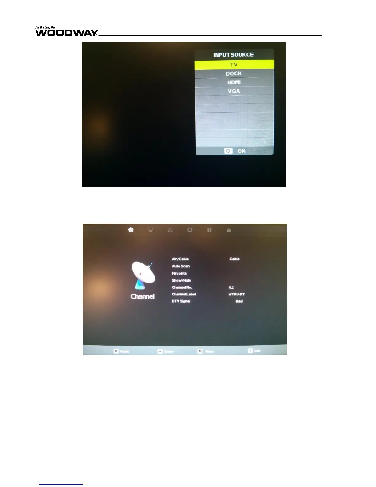 Release the ENTER key and press the BACK button. This will open the TV menu screen. Re-