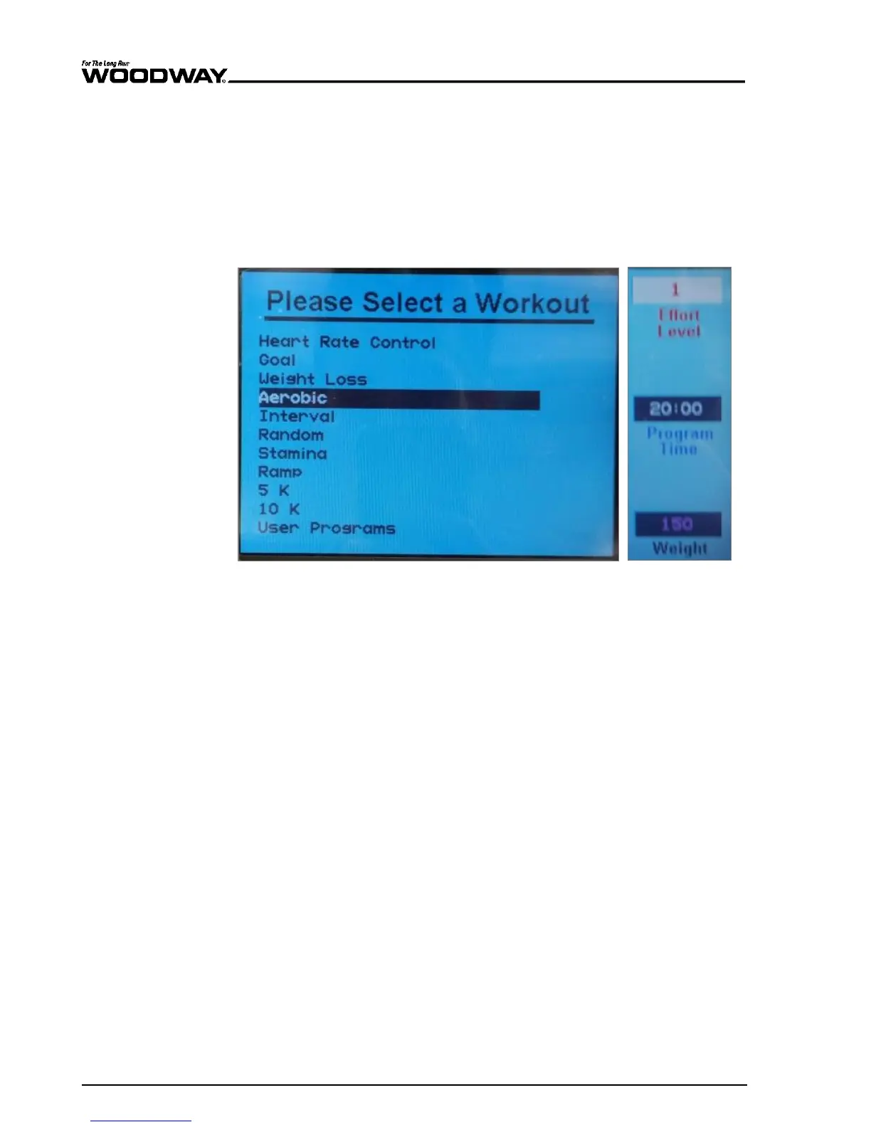 left side of the screen. Then use the SCROLL keys to highlight the “AEROBIC” pro-