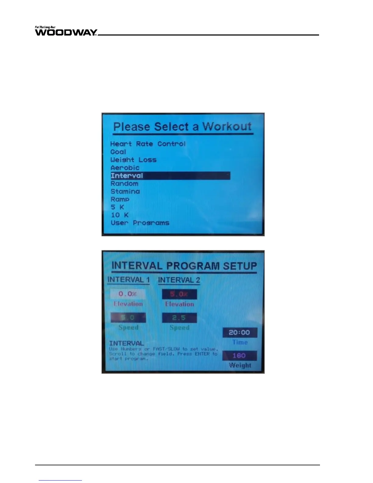 or the number pad. Speed and Incline must be entered for each interval as well as