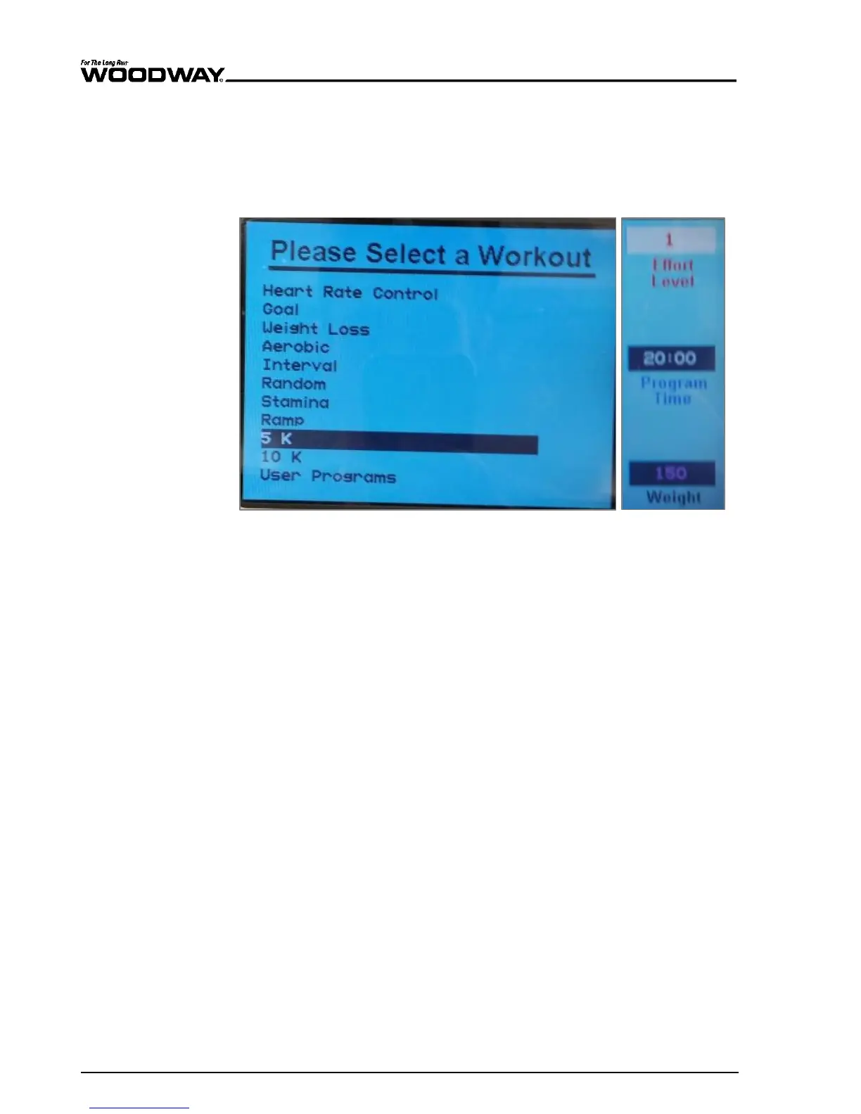 Fig. 89 Fitness Programs menu and data entry – 5K