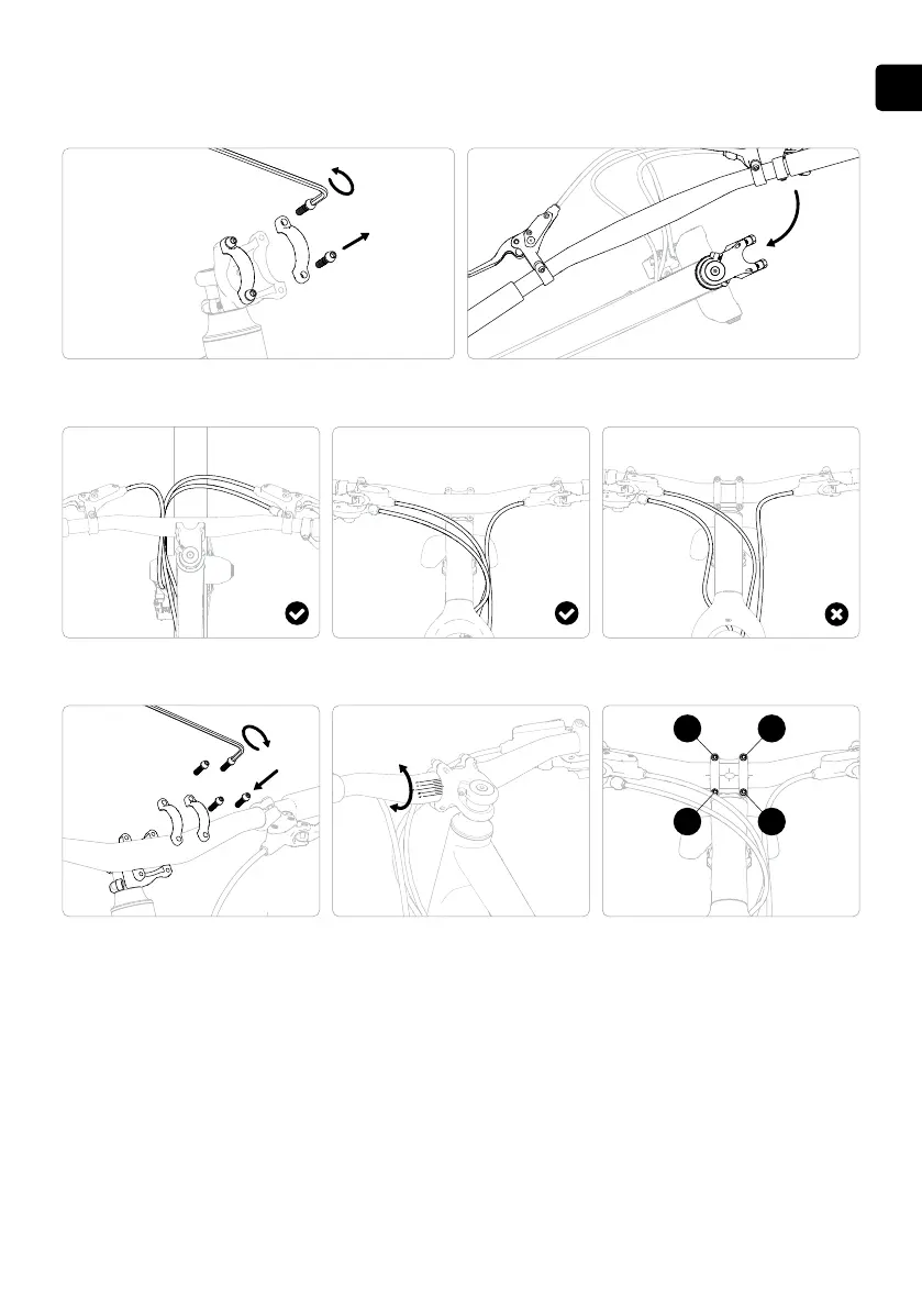 Die Bremsleitungen und das Schaltseil müssen links vom Steuerrohr verlaufen.