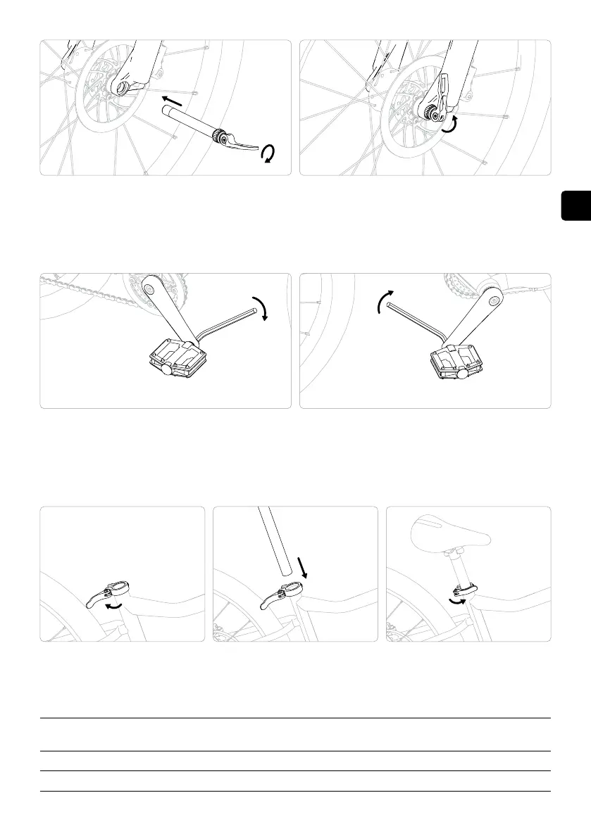 pijl in de rechter crankarm en draai het met de binnenzes-