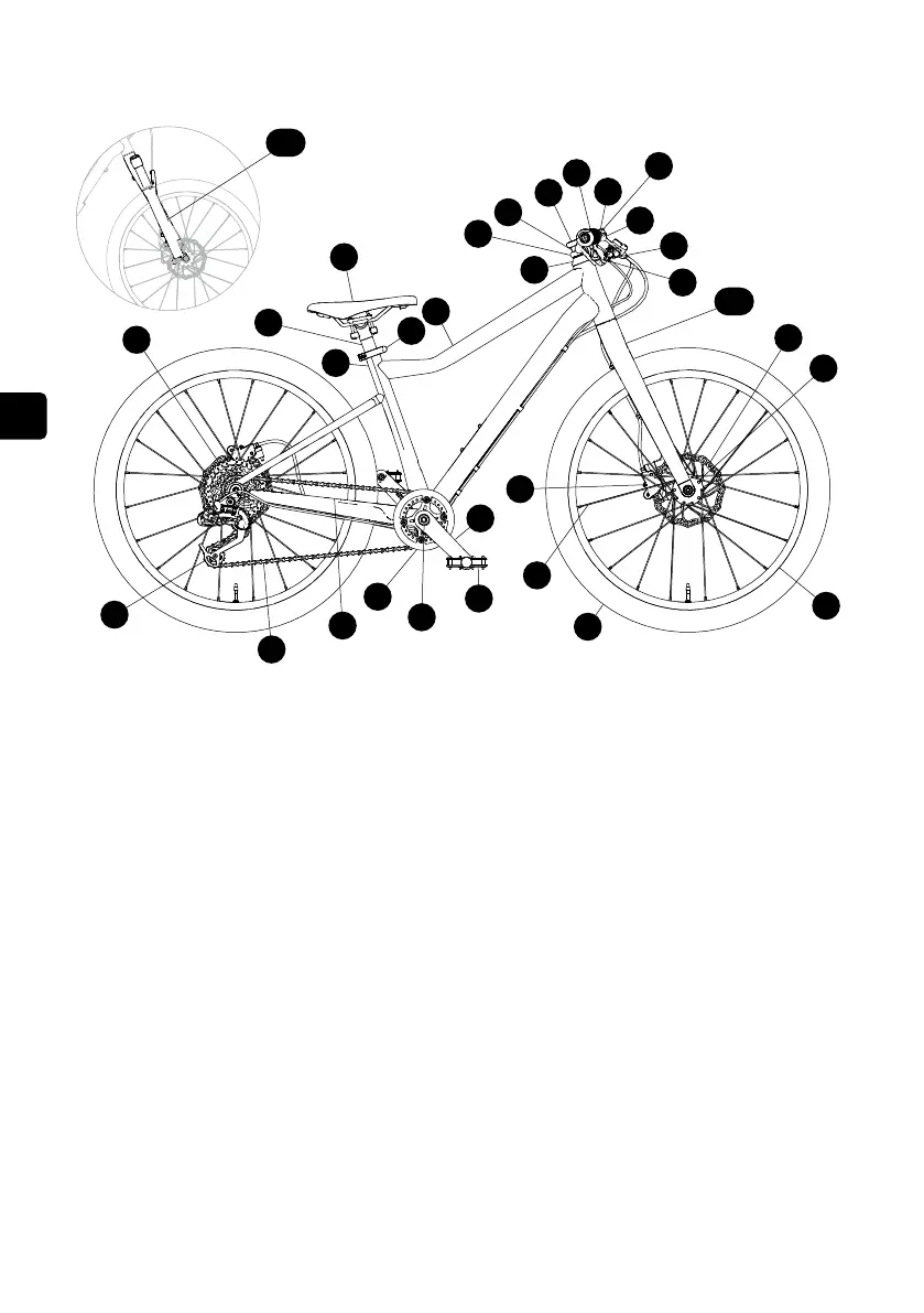sida av cykeln sedd ovanifrån och i färdriktningen. På wooms webbplats (woom.com) kan du i avsnittet ”Service &