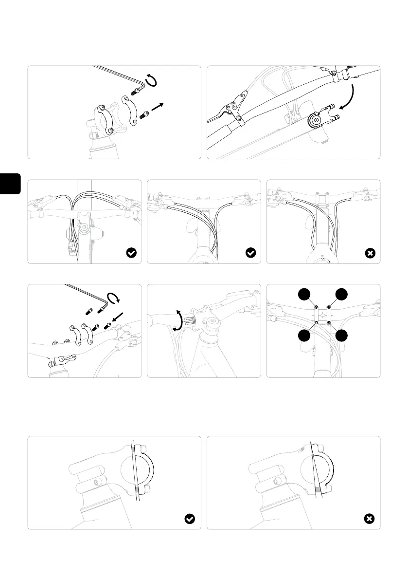 Bromskablarna och växelvajrarna ska löpa till vänster om styrröret.