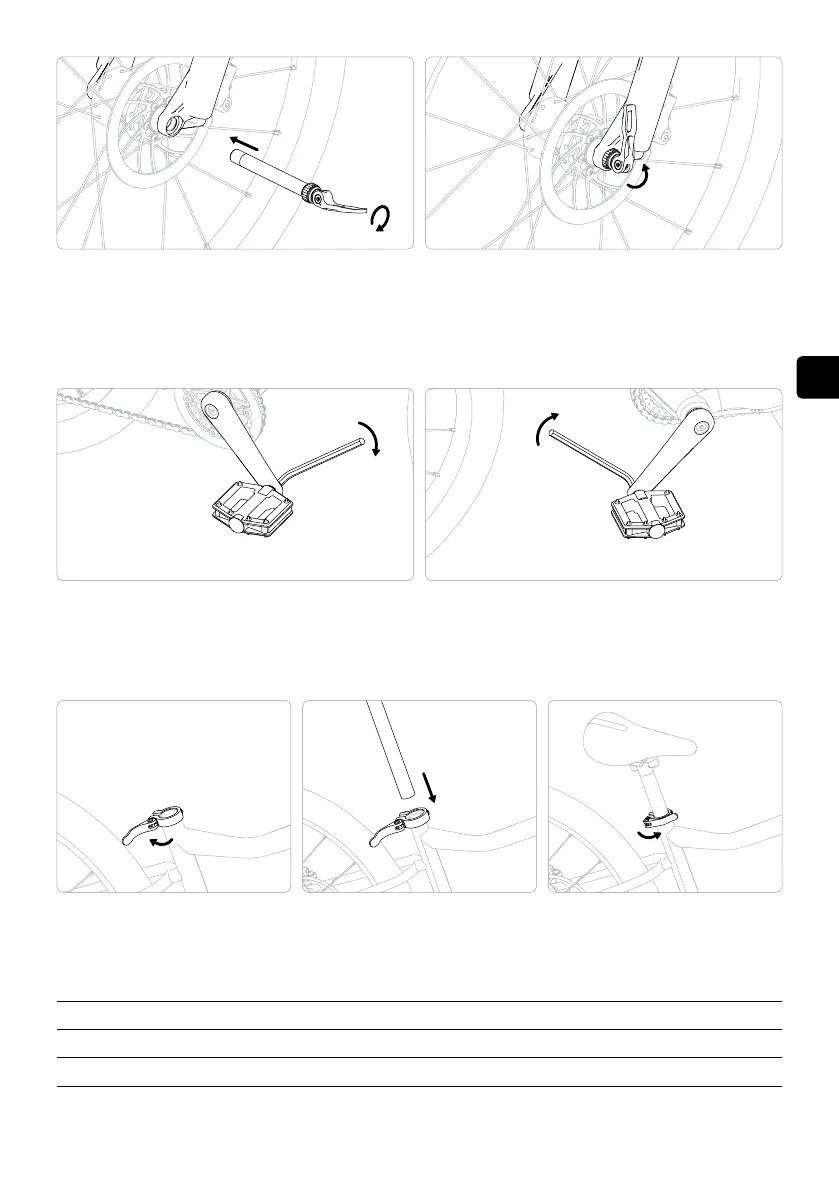 Skruva fast pedalen märkt med ”L” i pilens riktning i vänster