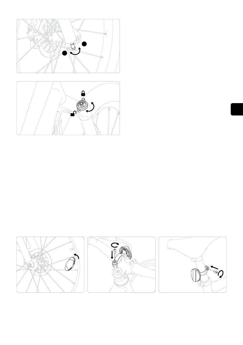 Sätt fast clip-on-reexer på ekrarna. Montera den vita reexen på styret och den röda på sadelfästet.